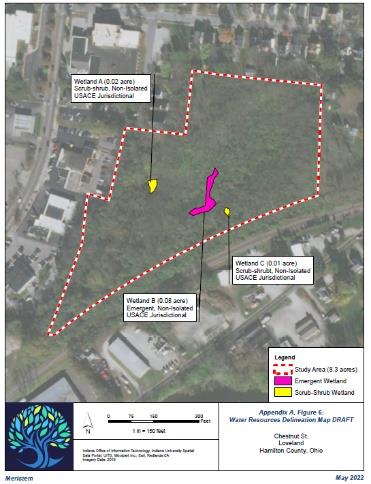 The city, along with Meristem and Patriot Engineering, worked with the Nature Conservancy of Ohio to finalize wetland mitigation bank credits within the Jacoby Branch Watershed, which will offset impacts to approximately 0.10 acres of wetlands located on the Chestnut Street Property as required by the Nationwide 404 Permit. Contractors continue to mobilize in preparation for carrying out site remediation activities.